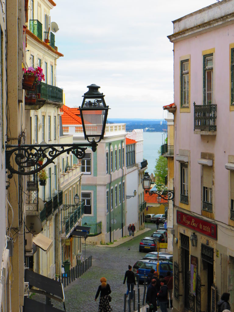 5.Đi tàu số 28E từ quảng trường Placa de Luis de Camoes dọc theo đường Rue da Conceicao men theo con đường nhỏ dốc lên núi cao, hai bên là những ngôi nhà màu trắng. Dừng lại ở nhà thờ nhỏ Santa Luzia để ngắm biển trước khi lên tới lâu đài S.George Castle, là nơi đẹp nhất để ngắm thành phố.