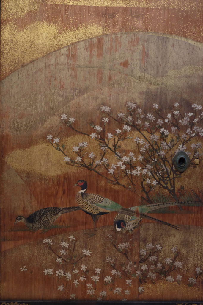 Tùng, bách và hoa anh đào được sử dung rộng rãi trong các bức vẽ
