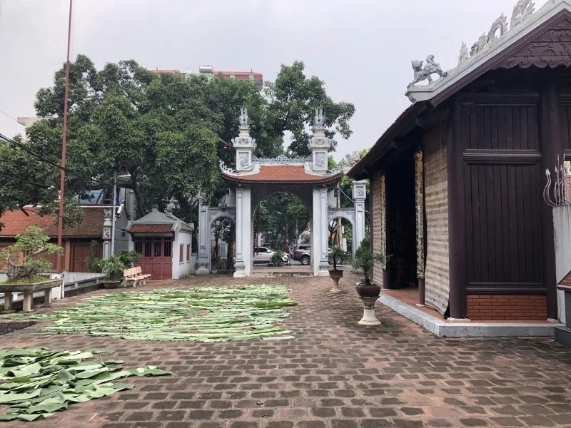 Trên sân gạch, chỉ thấy lá chuối phơi đầy sân nắng. 10/2021.